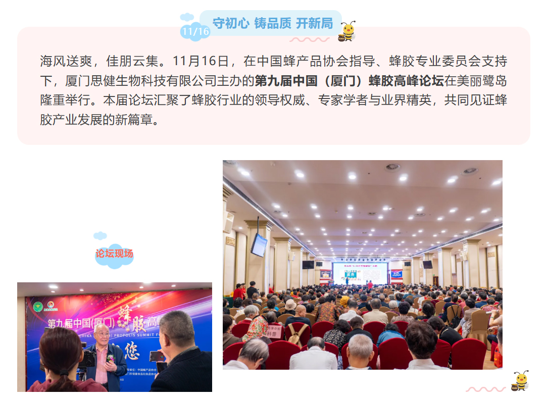 思健生物科技誠(chéng)邀您共赴廈門出席第九屆中國(guó)(廈門)蜂膠高峰論壇:與蜂業(yè)權(quán)威面對(duì)面,洞見(jiàn)蜂膠國(guó)際新未來(lái)